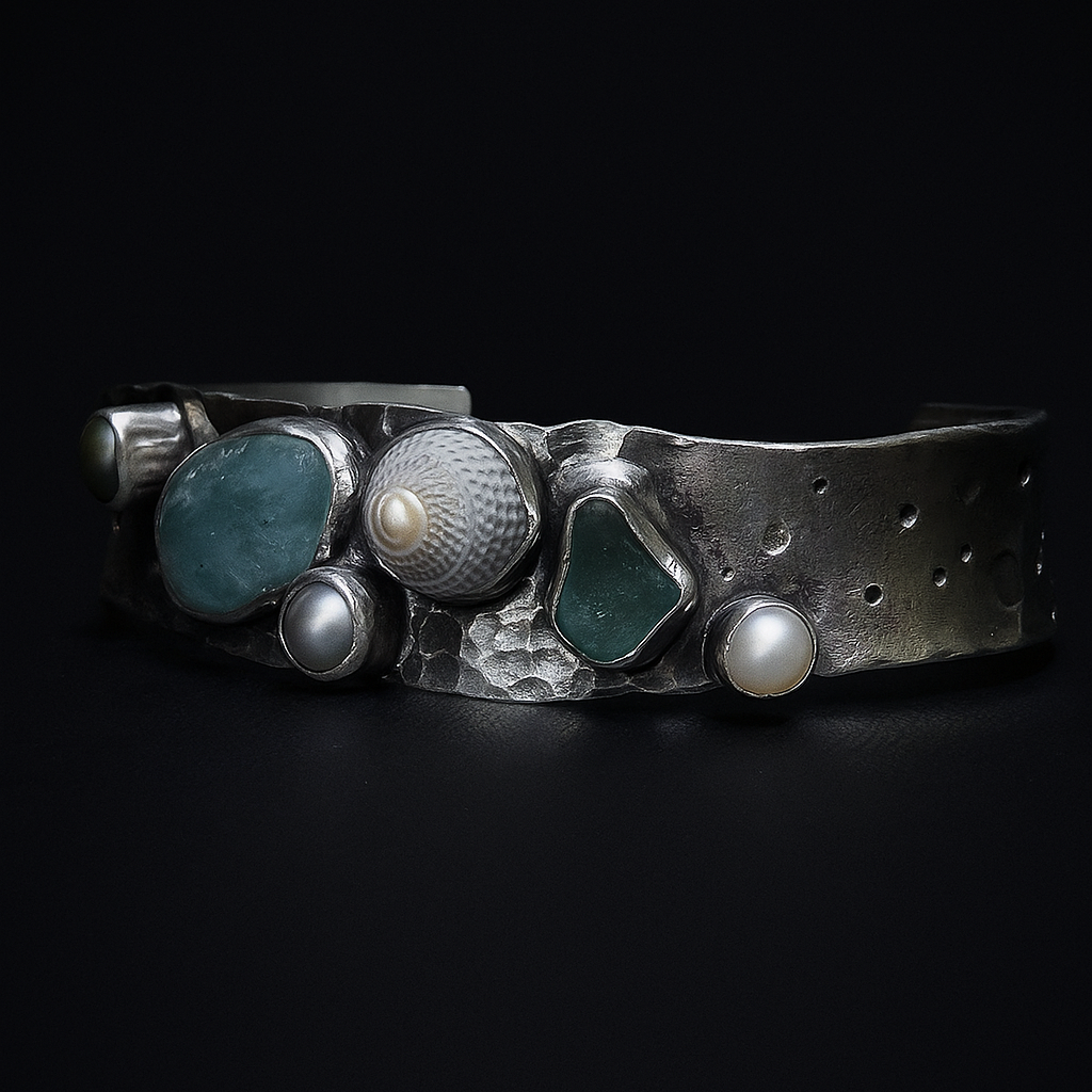 I work from a small but bright studio in Kirkcudbright, where every piece of jewellery is handcrafted at my bench. My setup includes traditional metalsmithing tools—hammers, saws, files, mandrels, torches, and polishing equipment—alongside gemstone-setting tools and my trusted sketchbooks. I work mainly in sterling silver and gold, pairing them with gemstones, pearls, and sea glass collected from the Galloway coast. This combination of simple hand tools and raw natural materials allows me to shape, forge and solder each piece from start to finish, creating jewellery with character, craftsmanship, and a strong sense of place.