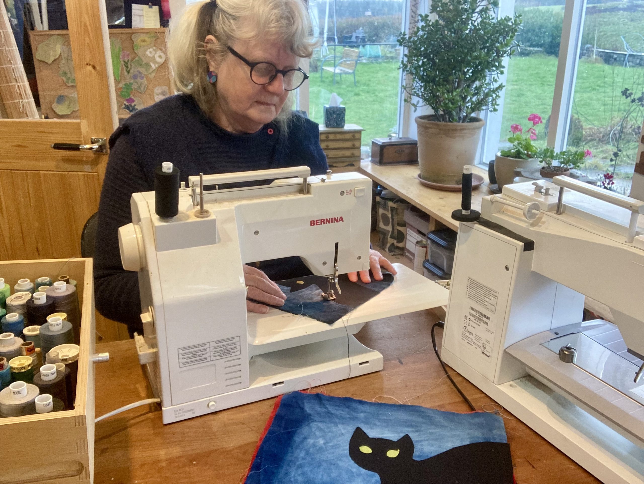 I have always liked making things in cloth, have a degree in Fashion/Textiles, and am inspired by the landscape, its textures and colours and the wildlife which inhabits it. These influences have fed into my current practice. I start with dye-painting onto a variety of natural fabrics from fine silks to linens and cotton velvets, which I then put together using a combination of piecing, applique, and free-motion machine embroidery.