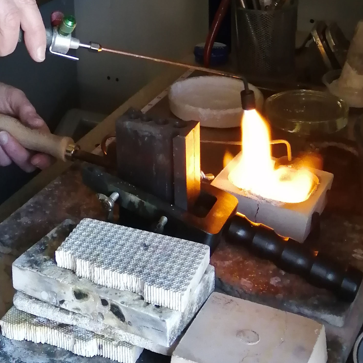This will be my second year in my new purpose built studio where I work with both new and traditional tools and techniques. Some of my collections involve hard gold plating which is done in house. I am sometimes asked if I can melt customers gold or silver to make new jewellery and often this is possible.